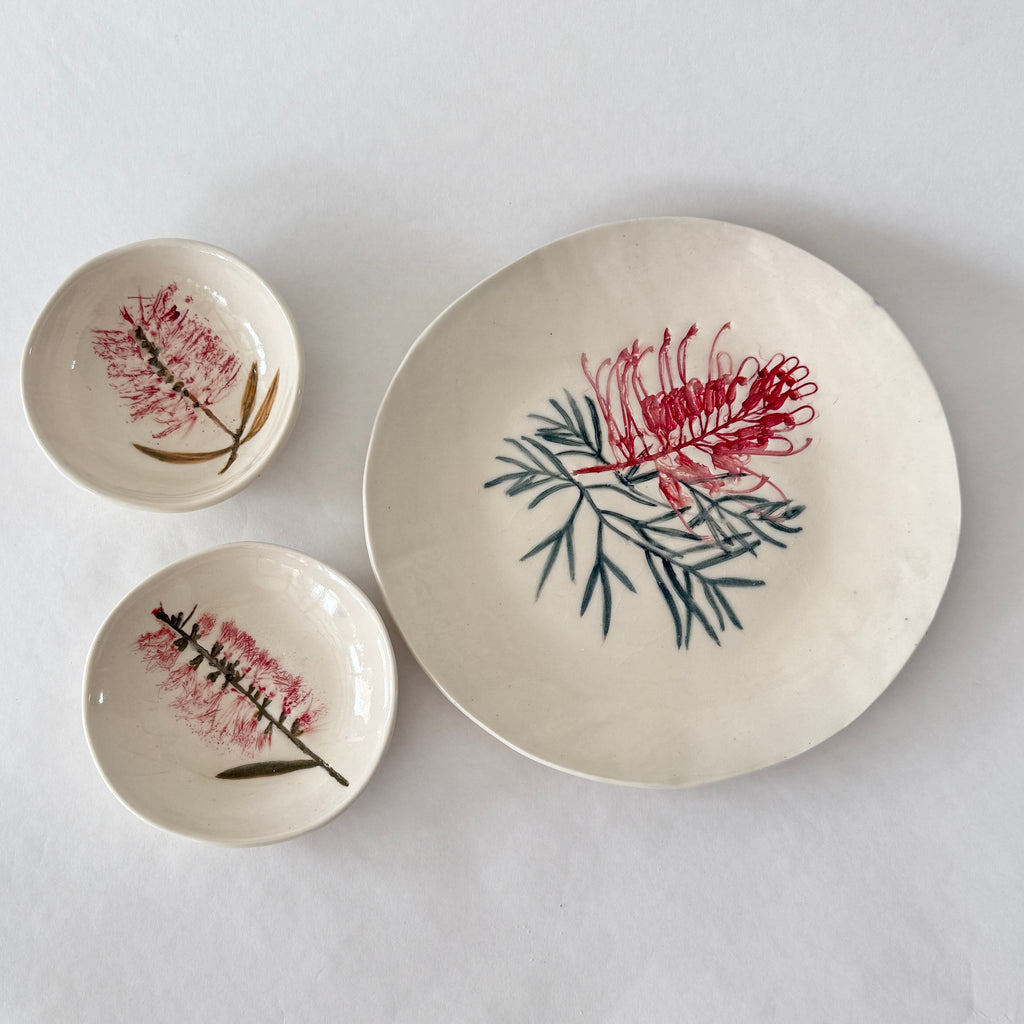 Your instructor is Romanda Newman, @romandaceramics, and has been hand building with porcelain for over 10 years. She specialises in pressing native flowers onto porcelain clay, making functional and sculptural ceramics. Romanda has been exhibited and sold work throughout the country.