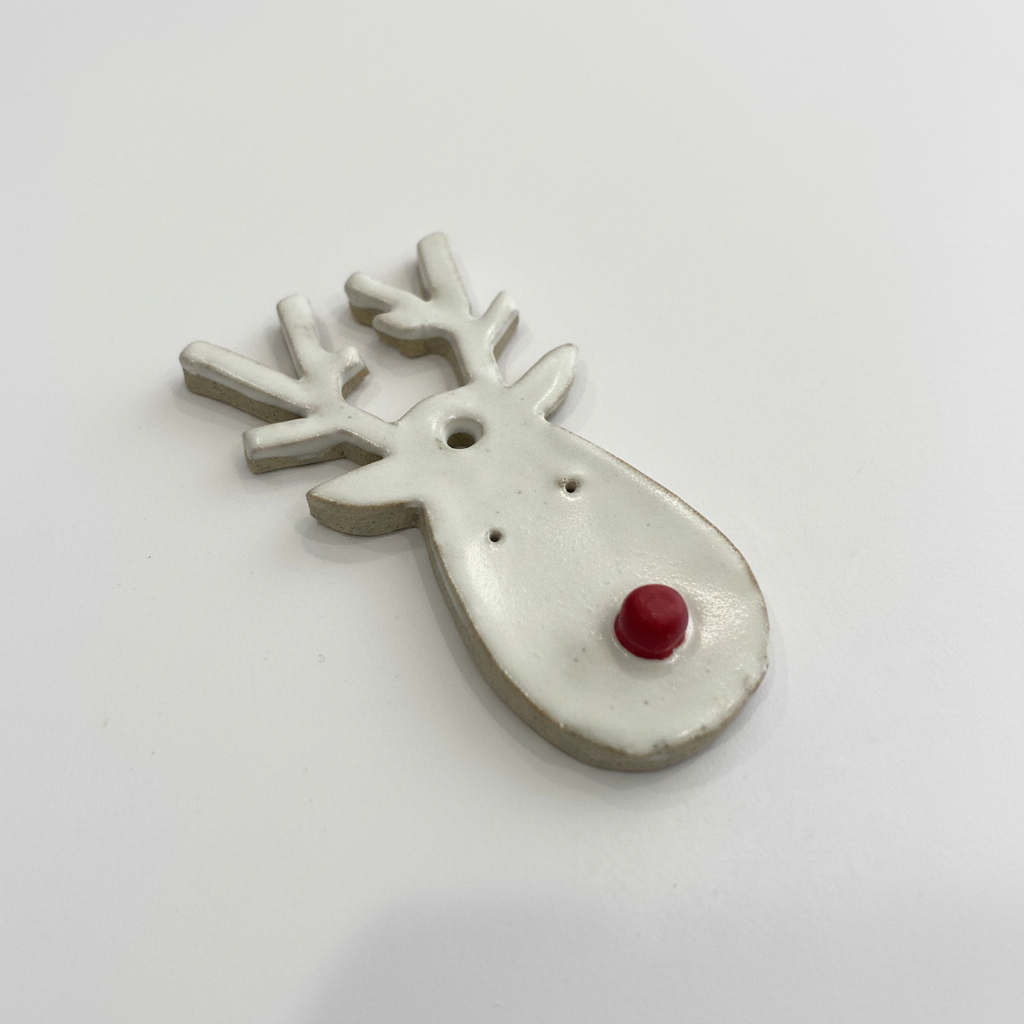 Ceramic Christmas ornaments can be used as Christmas tree decorations, window hangings, mobiles or gift tags. The Reindeer ornament remains our top-selling Christmas decoration. It’s made from Stoneware clay and glazed with a bright red nose and stain white face.